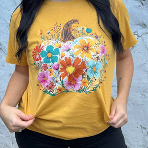 Celebrate the cozy spirit of autumn with the Floral Fall Pumpkin Graphic Tee! This playful tee features a charming pumpkin adorned with delicate floral patterns, making it perfect for crisp fall days or festive gatherings. Soft and comfortable, itβs designed to keep you smiling while showing off your love for pumpkin spice and everything nice. Embrace fall vibes in style!