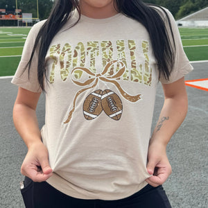 Show off your sporty spirit with a playful twist in this Camo Football Ribbon Graphic Tee. The camo pattern celebrates your love for the game, while the ribbon detail adds a fun, unique touch. Perfect for game day or casual outings, this tee blends comfort with a cool, athletic vibe that scores every time.