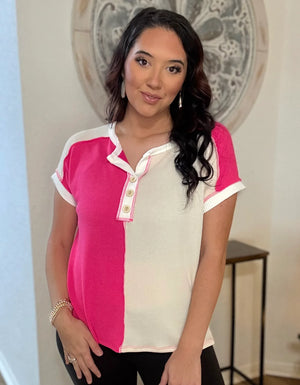 The Adelyn Top features a color block ribbed material that enhances versatility and adds modern style to any outfit. With its comfortable and durable design, this top is perfect for everyday wear and can easily be dressed up or down. Elevate your wardrobe with this must-have piece.
